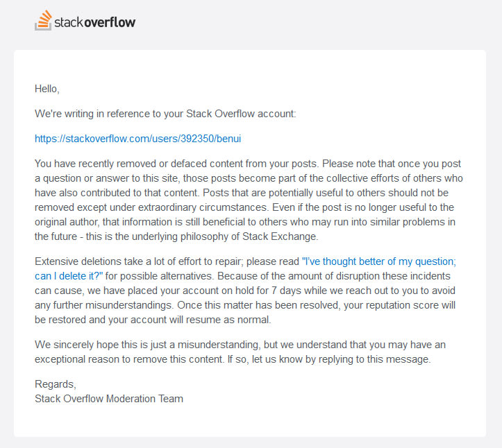 Stack Overflow announced a partnership with OpenAI, causing the poster to try deleting their highest-rated answers due to concerns about profit and exploitation. However, their attempts were unsuccessful and resulted in a suspension.