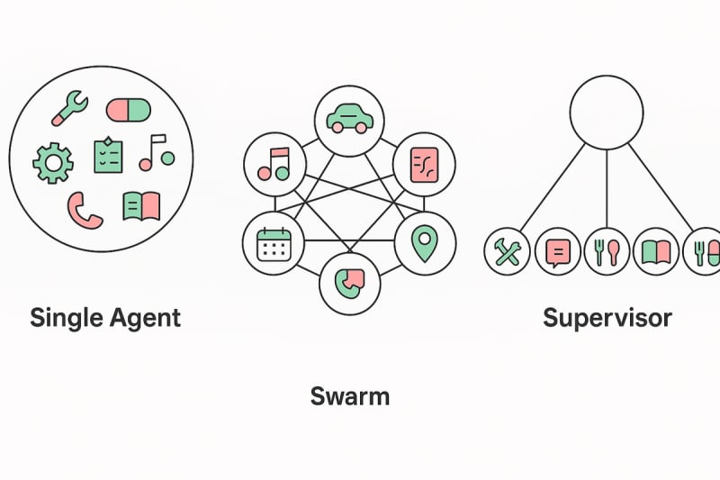 LangChain researchers benchmarked three multi-agent architectures (single agent, swarm, and supervisor) using a modified Tau-bench dataset with distractor domains. The swarm architecture performed best overall, while the single agent baseline degraded significantly with additional context. The supervisor architecture showed