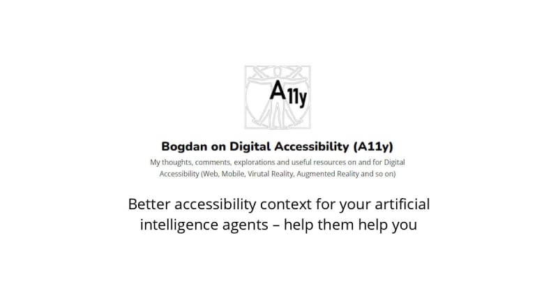 An example of what can helpModel Context Protocol (MCP) can be used to provide real accessibility information so that AI does not need to imagineWe still need human knowledge and understanding and will continue to need in the futureAuthor: Bogdan CerovacSort: