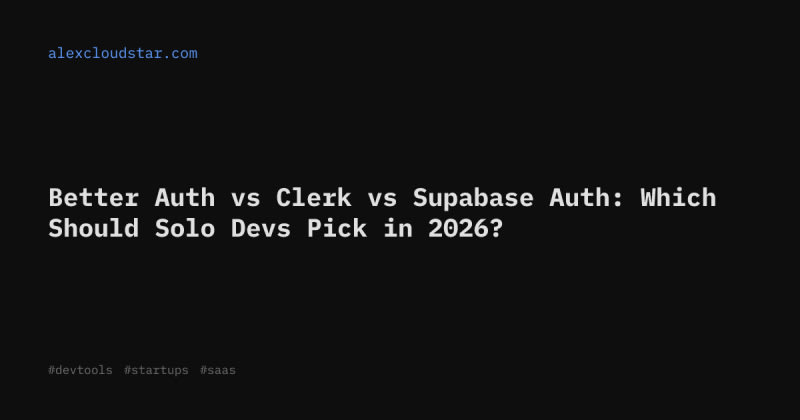 A practical comparison of three auth providers for solo developers in 2026: Clerk, Supabase Auth, and Better Auth. Clerk wins on UI polish and org features but has real lock-in and per-user pricing that scales poorly. Supabase Auth is the natural choice when already using Supabase, especially for row-level security integration.