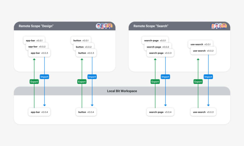 Independent components are components and modules that are developed and versioned independently and shared across remote ‘scopes’ Independent components are all part of a single virtual monorepo. An update made to one component will propagate to all its dependents using a CI for components. That makes collaboration, in-and-across projects, simple and safe.