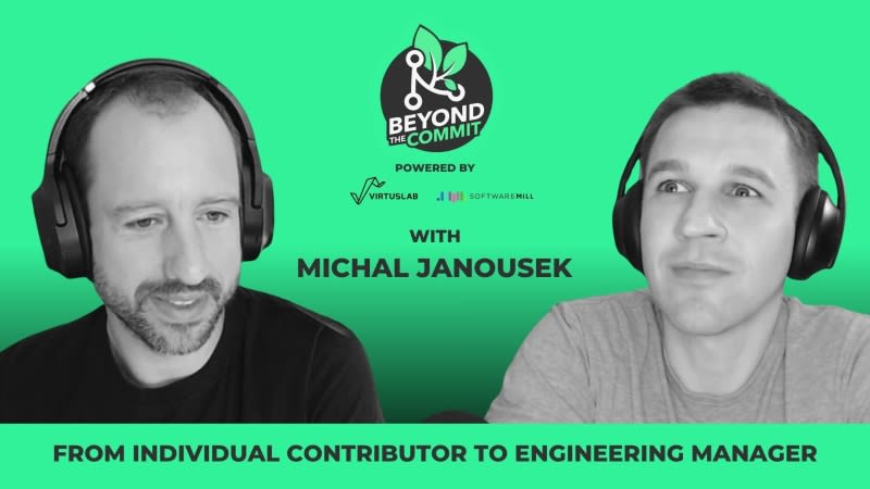 A podcast episode featuring Michal Janoušek, founder of PureBrew Tech, discussing the career progression path in software engineering from individual contributor to team lead and engineering manager. The conversation covers essential skills, mindsets, and expectations at each career stage, drawing from nearly 20 years of industry experience in consulting and leadership roles.