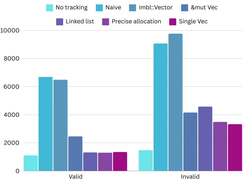 Validation APIBenchmark setupNaive approachIdea 1: Cheaper clonesIdea 2: Reuse allocationsIdea 3: Linked listIdea 4: Precise memory allocationIdea 5: Avoid temporary VecIdea 6: Struct size optimizationMore ideas that didn't make itBonus idea: Maybe you don't need a linked list?ConclusionSort:
