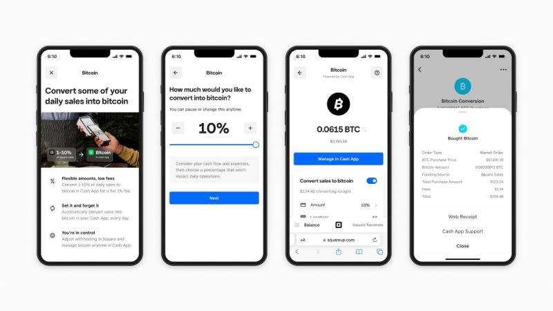 Block announces a new program allowing Square merchants to convert a portion of their daily sales to bitcoin, providing economic empowerment and global monetary system participation.