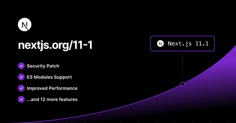 Next.js 11.1 includes security and performance updates. The security update addresses an open redirect that could allow for phishing attacks by redirecting to an attacker's domain from a trusted domain. We're working on integrating SWC, a super-fast JavaScript and TypeScript compiler written in Rust, that will replace two toolchains used in Next.js.