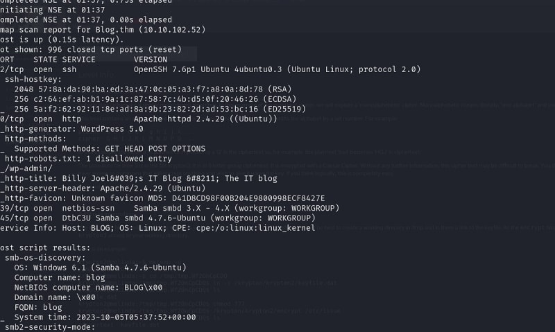 A walkthrough of the 'Blog' TryHackMe CTF box covering the full attack chain: network scanning with nmap, directory enumeration with gobuster, WordPress credential brute-forcing with wpscan, exploiting the WordPress 5.0 Crop-image Shell Upload vulnerability via Metasploit to gain a foothold, discovering database credentials in