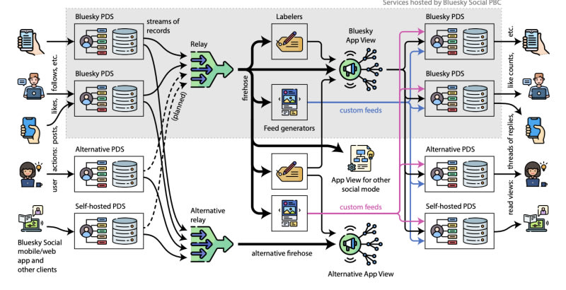 Bluesky is a decentralized social media platform built on the AT Protocol, designed to give users greater control over their data, identity, and content interaction. It offers modular services for identity retention, account migration, and customizable content experiences and has close to 30 million users. Bluesky’s federated