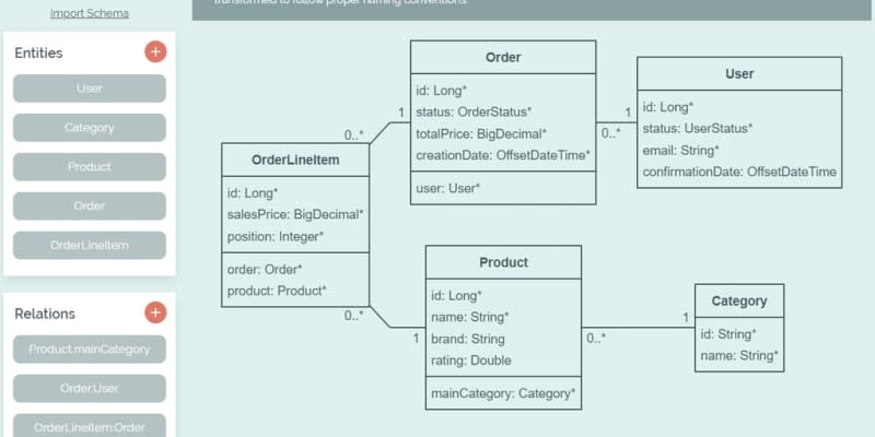 With Bootify you can create your next Spring Boot application with custom database and REST API. 1) Define your project setup. 2) Create your entities and relations. 3) Explore and download your code. 4) Embed and collect your code with Bootify.