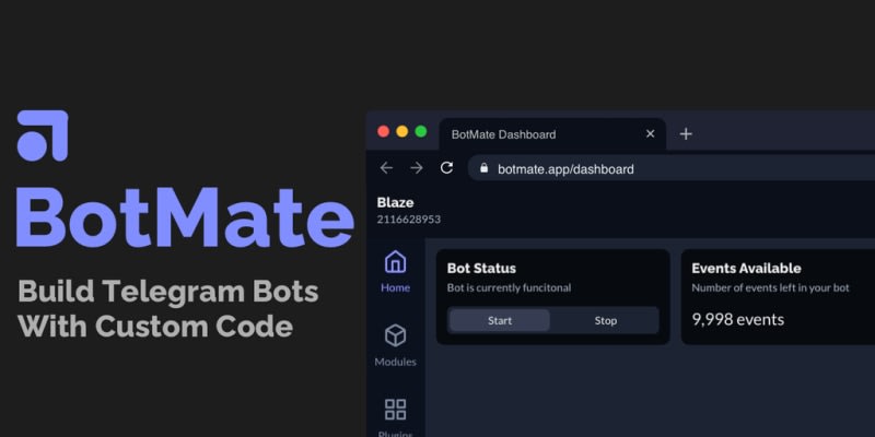 BotMate - Build powerful Telegram bots with custom codes and plugins