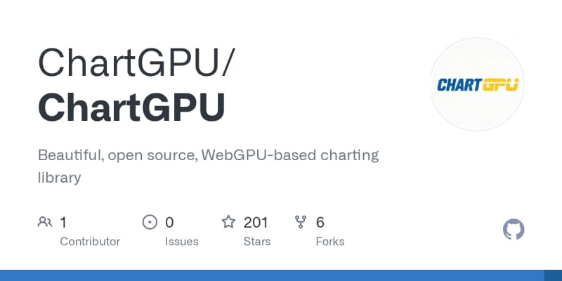 ChartGPU is an open-source TypeScript charting library that leverages WebGPU for high-performance rendering of large datasets. It supports multiple chart types (line, area, bar, scatter, pie, candlestick), built-in interactions (hover, tooltips, crosshair), streaming data updates, zoom capabilities, and theming. The library