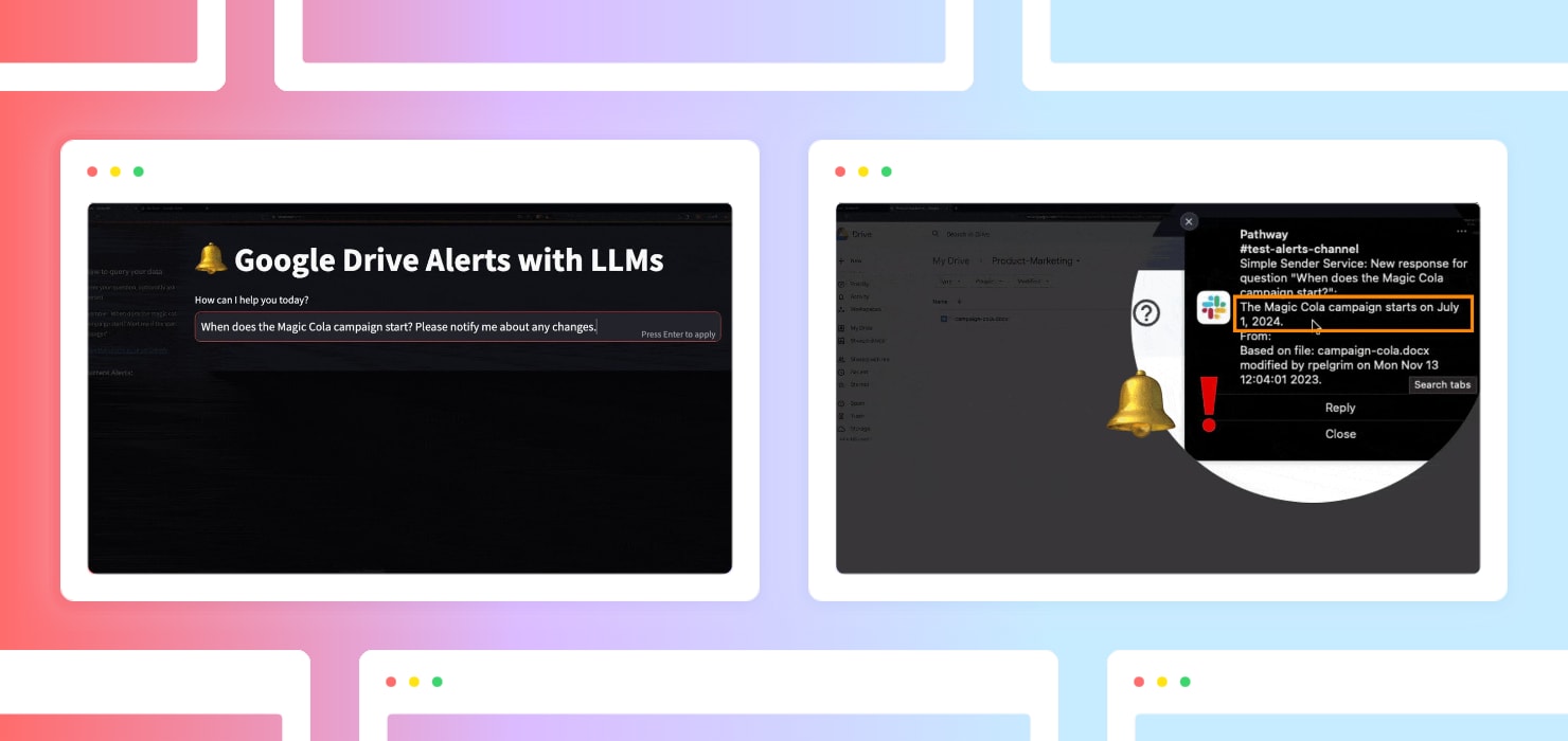 Learn how to build a real-time RAG chatbot using Google Drive and Sharepoint with Pathway and LlamaIndex. The chatbot will have access to the most recent version of the knowledge base without manual reruns.