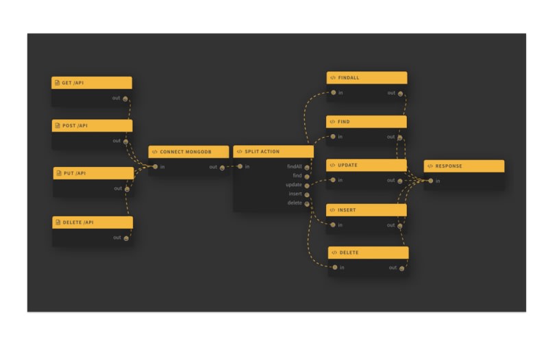We’ll build a visual Serverless RESTful API using MongoDB and NodeJS. We will create endpoints for creating data, reading data, updating data, and deleting data. To set up a HTTP trigger simply look through the embedded library functions that Lolo provides you with.