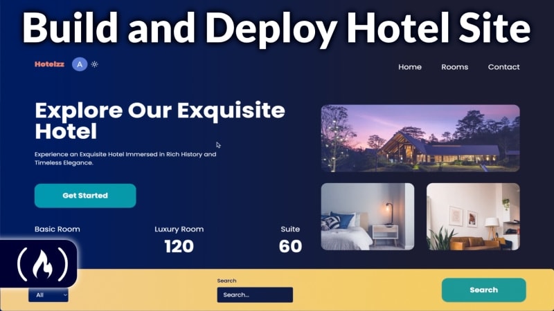 Learn how to build a hotel management website using Next.js, React, Sanity.io, Tailwind CSS, and Stripe. The course covers CRUD operations with Sanity.IO, room booking and review, payment processing with Stripe, React Context for UI themes, advanced search and authentication, TypeScript and useSwr hook, and deployment on Vercel.