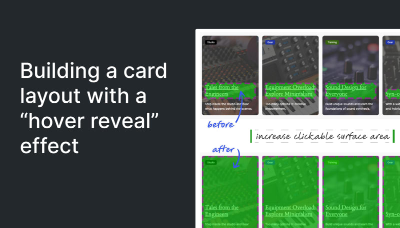 Create the card layout with the Grid blockIncrease the clickable surface areaWrapping upSort:
