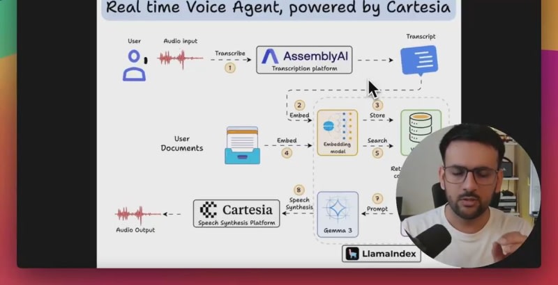 Real-time voice interactions are becoming increasingly popular. This post provides a detailed, step-by-step guide on building a real-time Voice RAG Agent. Key components include using AssemblyAI for speech-to-text transcription, LlamaIndex for document-based answers, and Cartesia for generating seamless speech. The post