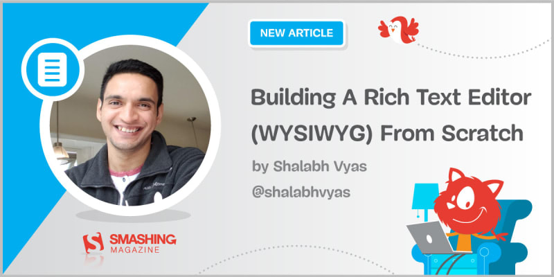 In this article, we will learn how to build a WYSIWYG/Rich-Text Editor that supports rich text, images, links and some nuanced features from word processing apps. We will use SlateJS to build the shell of the editor and then add a toolbar and custom configurations. The code for the application is available on GitHub for reference.