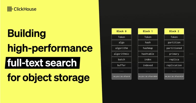 ClickHouse engineers detail the redesigned full-text search index built to perform efficiently on object storage. The new design uses a block-based dictionary with front-coding compression, a sparse in-memory index for fast block lookup, and three posting list representations (Roaring Bitmaps, VarInt-encoded, and embedded)