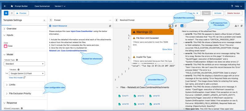Salesforce engineering team built real-time multimodal AI capabilities for Prompt Builder that process PDFs, images, and documents without pre-indexing. The system handles 50 million daily file uploads through a unified architecture serving both Data Cloud and non-Data Cloud customers. Key innovations include a real-time file processing pipeline with base64 conversion, a compatibility abstraction layer for multiple LLM providers (OpenAI, Gemini, Anthropic), and partial grounding validation that processes files independently rather than failing entire workflows. The solution unlocks file-based business data for AI agents, enabling use cases like automated document field extraction, insurance claim assessments, and case attachment summarization.