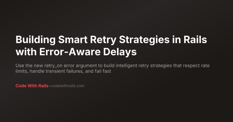 Rails 8.2 introduces an enhancement to ActiveJob's retry_on that allows retry logic to inspect the actual error object, not just execution count. This enables intelligent retry strategies that can respect API rate limit headers, extract retry hints from exception messages, adapt delays based on HTTP status codes, and make