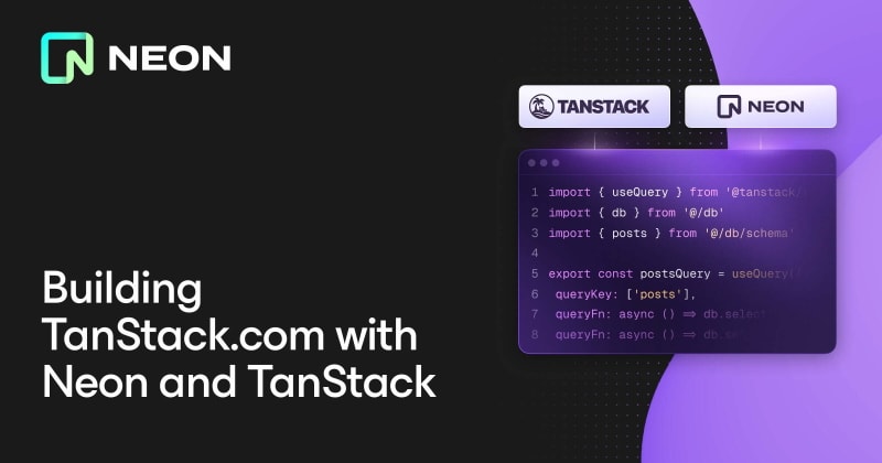 TanStack.com runs on its own stack: TanStack Start as the full-stack framework, TanStack Query for data fetching, and Neon with Drizzle for Postgres persistence. The setup powers documentation and community features serving millions of visitors. Neon integrates seamlessly through the TanStack Start CLI, offering instant