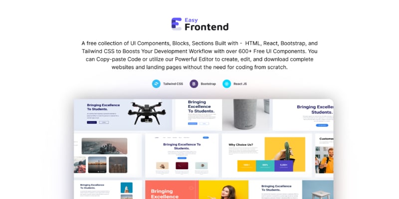 built to create landing pages and websites. Easyfrontend UI components are free and open-source. show your support and love, don't forget to give us a star 🌟