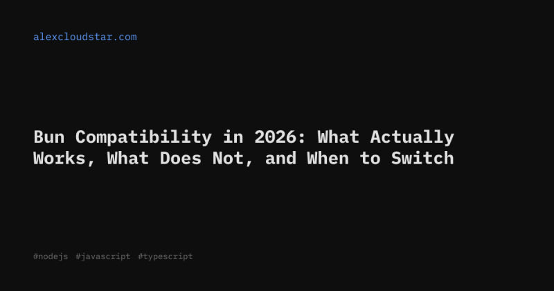 A practical 2026 compatibility map for Bun covering Node.js API support, npm package compatibility, and Next.js runtime behavior. Core Node.js built-ins (fs, path, http, crypto, buffer) work reliably. Native addons using node-gyp/N-API are the main blocker since Bun uses JavaScriptCore instead of V8 — bcrypt, canvas, and argon2