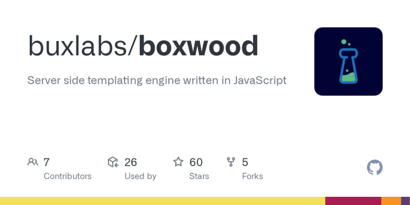 boxwood is a server-side templating engine written in JavaScript. It allows templates to be split into components, CSS to be hashed per component, and templates to import other dependencies. It is small, easy to start with, and good for SEO.
