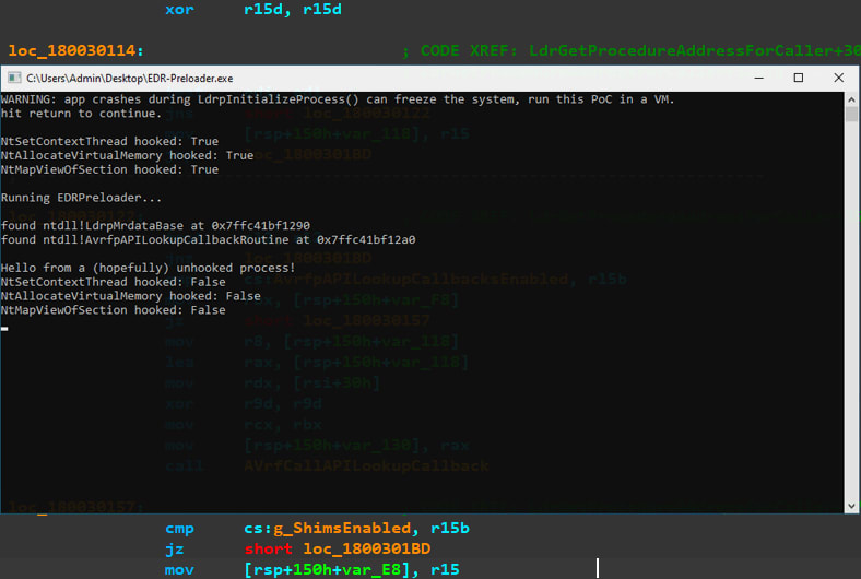 EDR-Preloading is a technique to bypass Endpoint Detection and Response (EDR) user-mode hooks by executing malicious code before the EDR's DLL loads into a process. By exploiting the AppVerifier layer in ntdll — specifically the AvrfpAPILookupCallbackRoutine pointer — an attacker can register a callback that fires during early