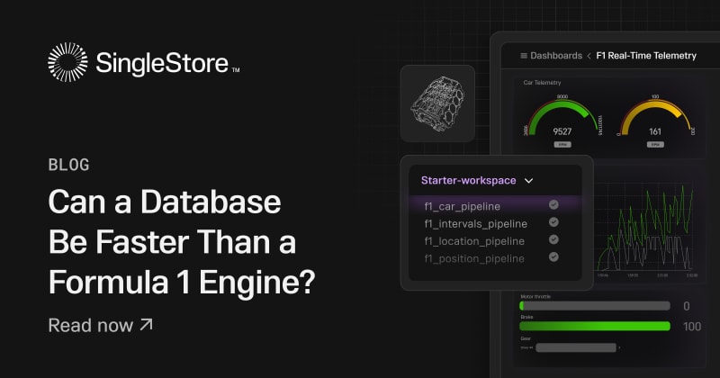 Formula 1 cars generate vast amounts of real-time telemetry data, which is crucial for strategic decision-making. Each car is fitted with 300 sensors producing 1.1 million data points per second. Teams use this data for simulations, performance analysis, and strategy adjustments. SingleStore's real-time analytics capabilities