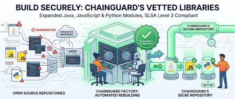 Chainguard has expanded its repository of secure open source libraries to include Java and JavaScript components, alongside a generally available expanded Python library set. The company has rebuilt nearly one million unique Java dependency versions—including Spring Boot, Log4j, and Apache Commons—and covers 88% of the top 500