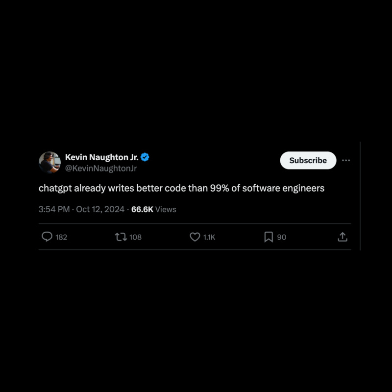 "chatgpt already writes better code than 99% of software engineers"