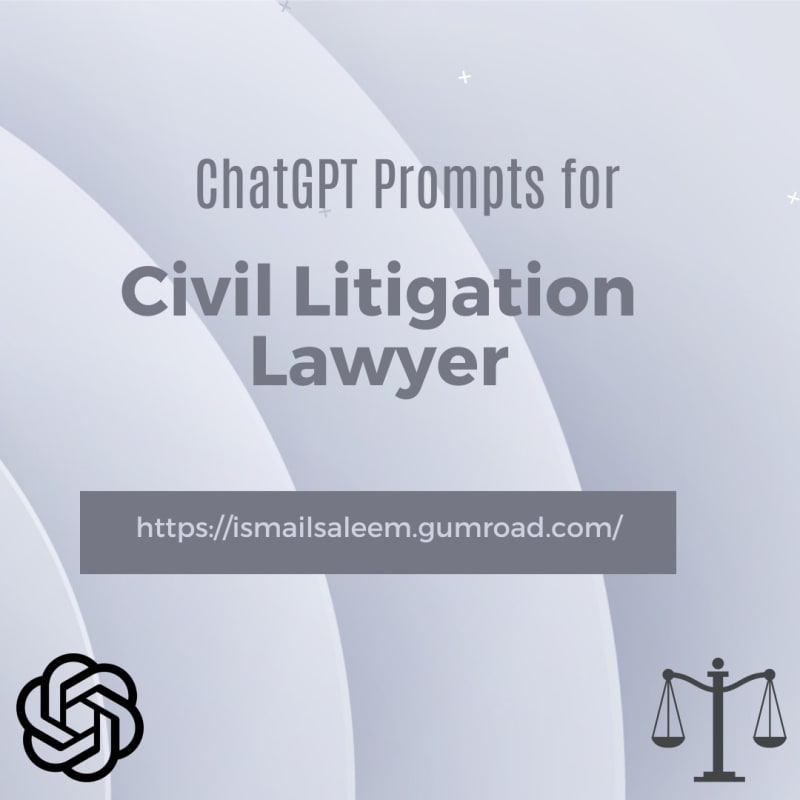 ChatGPT Prompts for Civil Litigation Lawyer1. Legal Research and Case Law Analysis2. Drafting Legal Documents3. Preparing for Depositions and TrialsChatGPT Prompts for Civil Litigation Lawyer4. Client Communication5. Case Strategy and Analysis6. Continuing Legal Education and Knowledge UpdatesChatGPT Prompts for Civil Litigation LawyerSubscribe to Ismail Store on GumroadSolve Programming Problems (ChatGPT, Programming)ChatGPT Prompts for Professionals - Your Source for Expert GuidanceSort: