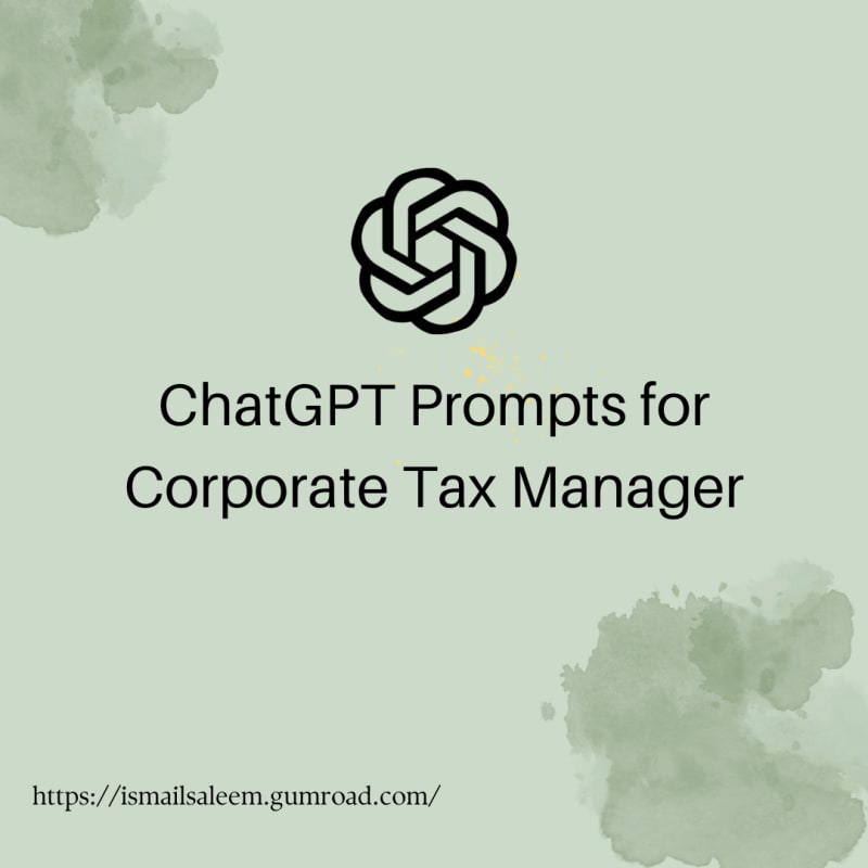 ChatGPT Prompts for Corporate Tax Manager1. Tax Compliance and Regulation Updates2. Tax Planning and Strategy3. Audit PreparationChatGPT Prompts for Corporate Tax Manager4. Transfer Pricing5. Tax Filing6. Tax Deductions and Credits7. Tax Risk Management8. International Taxation9. Tax Documentation and Record Keeping10. Tax Advisory and Consultation11. Benchmarking and Performance Metrics12. Tax Savings AnalysisChatGPT Prompts for Corporate Tax ManagerChatGPT Prompts for Professionals - Your Source for Expert GuidanceSubscribe to Ismail Store on GumroadSolve Programming Problems (ChatGPT, Programming)Sort: