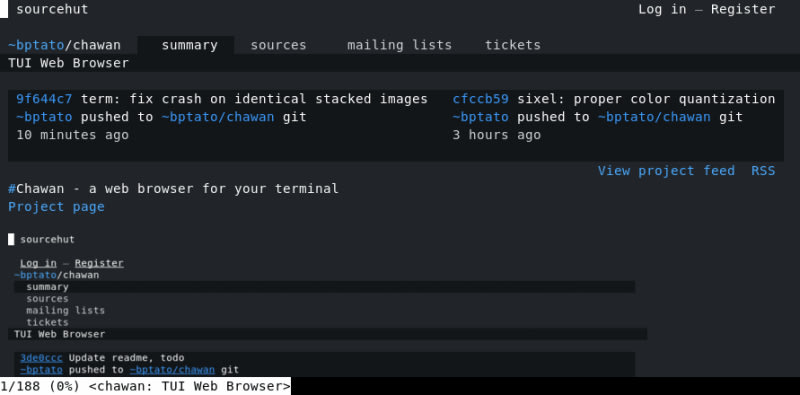 Chawan is a text-mode web browser designed for use in terminals, featuring multi-processing, incremental document loading, HTML5 support, and customizable keybindings. It supports multiple protocols, basic JavaScript, and has extensive security measures. It requires a POSIX-compliant OS and several dependencies to compile.