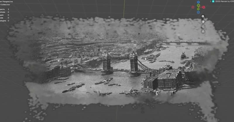 Krzysztof Szkoda created a 3D Gaussian Splat reconstruction of 1930s Tower Bridge in London using SHARP, a tool that converts single images into 3D environments using depth and focus data. Unlike traditional 3D Gaussian Splatting which requires multiple images, SHARP uses machine learning algorithms to reconstruct scenes from a