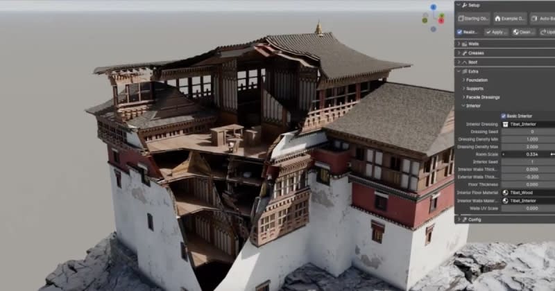 Senior Concept Artist and Art Director Julien Gauthier has launched Auto-Building 1.2, a new version of his procedural building generator for Blender. The update includes compatibility with Blender 4.0, a new Tibetan monastery preset, and various other features and improvements.