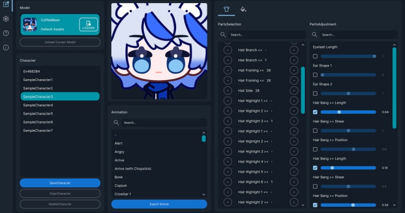 EmoteLab is a work-in-progress tool by 3D artist 0x4682B4 that enables users to create customized animated characters and emotes without prior animation experience. The tool features an intuitive interface with preset parts, color customization options, and the ability to export characters as GIFs for use on platforms like