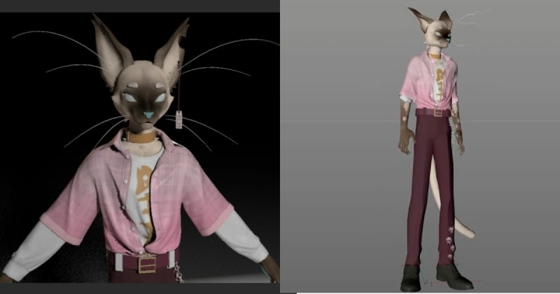 3D artist Trox created a short animation to test a character rig of an anthropomorphic cat. The animation demonstrates breathing mechanics with chest movement and whisker physics to enhance expressiveness.