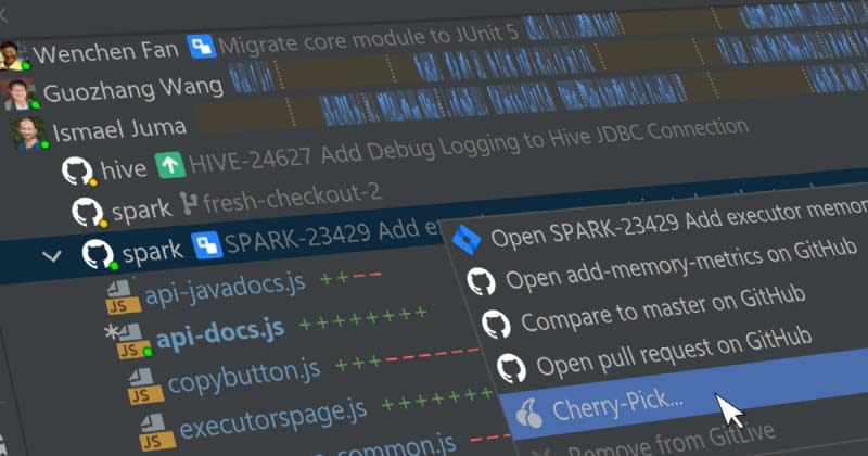 GitLive allows you to cherry-pick your teammate's changes straight from their local files without having to push and pull to Git. Clicking on a file will open a diff of the changes so we can make sure it contains only the changes we need. You can also perform the cherry pick at the level above if you want to pick all changes from multiple files at once.
