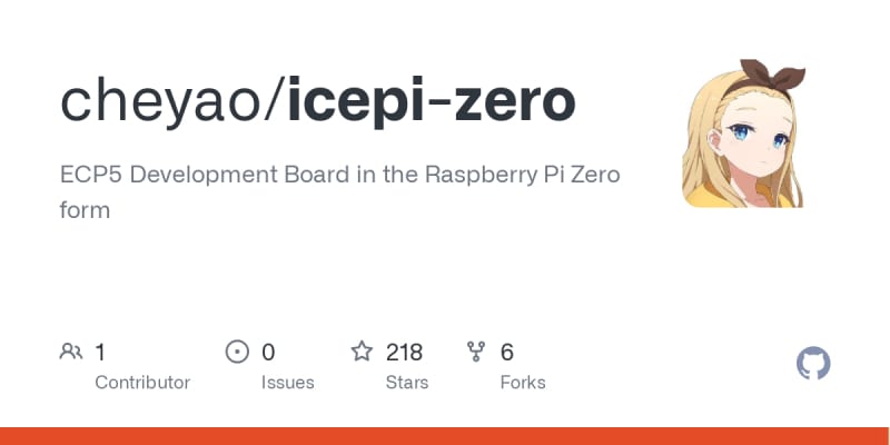 Icepi Zero is an open-source FPGA development board featuring a Lattice ECP5 25F FPGA in a Raspberry Pi Zero form factor. The board includes 24k LUTs, 112 KiB RAM, HDMI output, three USB-C ports, 256Mbit SDRAM, microSD slot, and onboard USB-to-JTAG converter. Designed as an affordable, portable solution for FPGA development, it