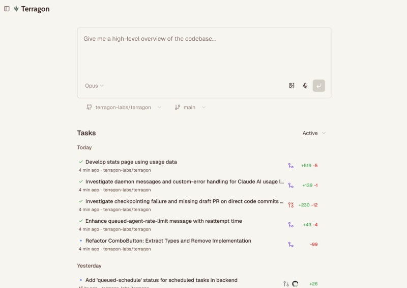Claude Code & Claude MaxHow do I run more than one agent at a time?Enter TerragonMy Current WorkflowA Typical DaySome interesting examplesLearningsWhat's next?Sort: