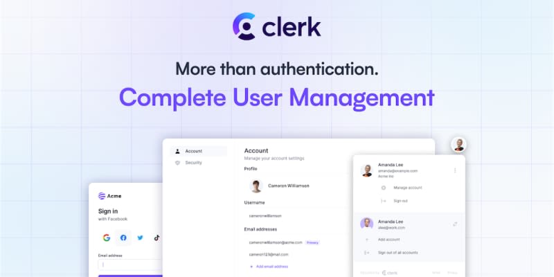 Integrate complete user management UIs and APIs, purpose-built for React, Next.js, and the Modern Web.