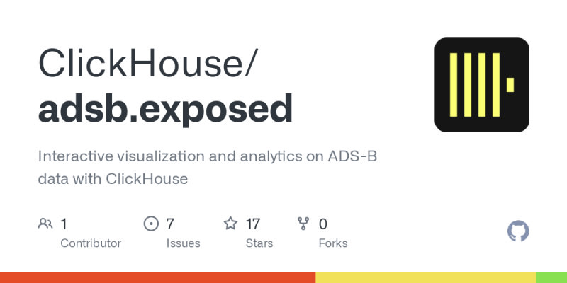 ClickHouse/adsb.exposed is a website that allows users to aggregate and visualize massive amounts of air traffic data hosted in a ClickHouse database. The website provides interactive visualizations and custom SQL queries for analyzing the data. ADS-B data is collected from transponders installed on airplanes and the website utilizes a Leaflet library for map display.