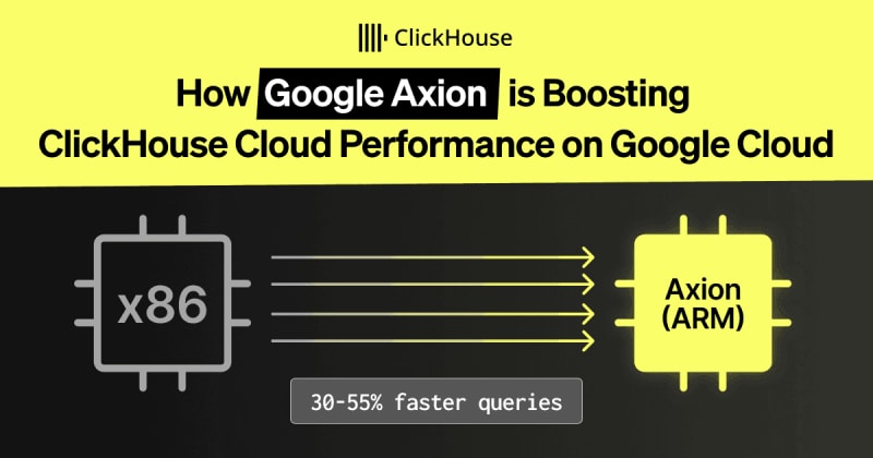ClickHouse Cloud is migrating its Google Cloud fleet from x86 N2D instances to Google Axion C4A (ARM-based) instances. Benchmarks show 30–55% faster ClickBench queries and ~15% fewer compute credits consumed across production workloads. A cohort of 38 migrated services confirmed the efficiency gains on real, diverse traffic. The migration is transparent to customers — no data movement or query changes required — and ClickHouse Cloud on Google Cloud now holds first place on the ClickBench combined ranking. The rollout is ongoing, with Axion expected to become the standard instance type for the platform.