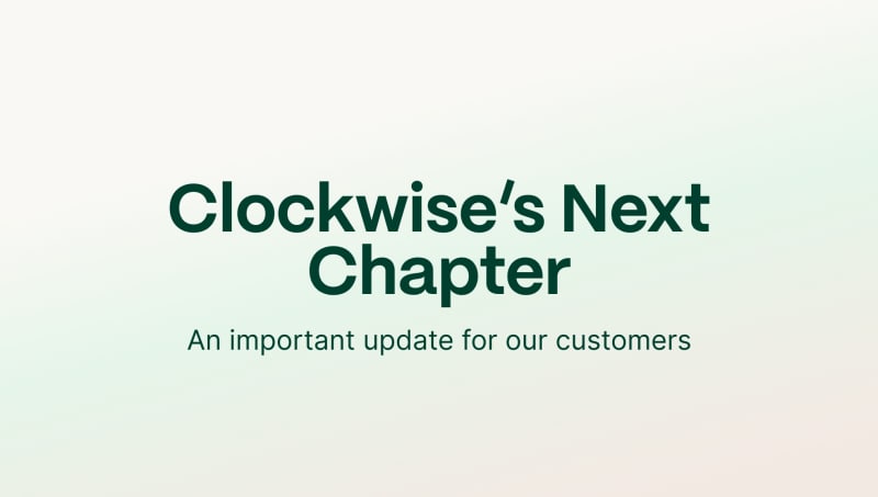 Frequently Asked QuestionsHow will the events on my calendar be impacted when the Clockwise services end?What about my Clockwise Scheduling Links? Will they stop working?Will my Focus Time blocks just disappear from my calendar or stay as-is?DataWill Salesforce have access to my data?What happens to all my data — my calendar preferences, Scheduling Links, and Focus Time settings?How long will Clockwise retain my data after shutdown and when will it be deleted?BillingWill I get a refund for unused subscription time?Will my card be charged again before shutdown?Will I be able to access prior invoices?What's NextAre there other tools Clockwise recommends as an alternative?Is there a migration guide to help me recreate my setup elsewhere?SupportWho can I contact if I have questions or issues during the wind-down period?How long will customer support be available?Sort:
