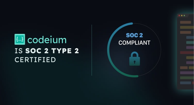 Codeium announces SOC 2 Type II compliance, verifying their security and privacy practices. SOC 2 is a third-party audit that ensures companies meet standards for security, availability, confidentiality, processing integrity, and privacy. Codeium is a leader in security compliance for generative AI tools, unlike GitHub Copilot
