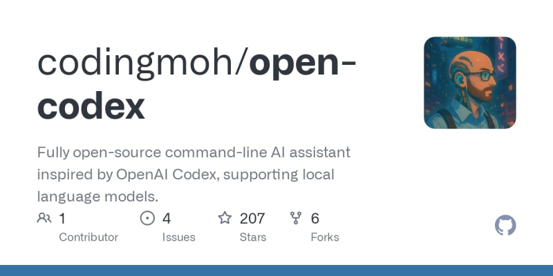 Open Codex is a fully open-source, command-line AI assistant inspired by OpenAI Codex that runs locally without requiring an API key. It supports local language models like phi-4-mini and works on macOS, Linux, and Windows. The tool converts natural language commands to shell commands and includes features like one-shot mode,