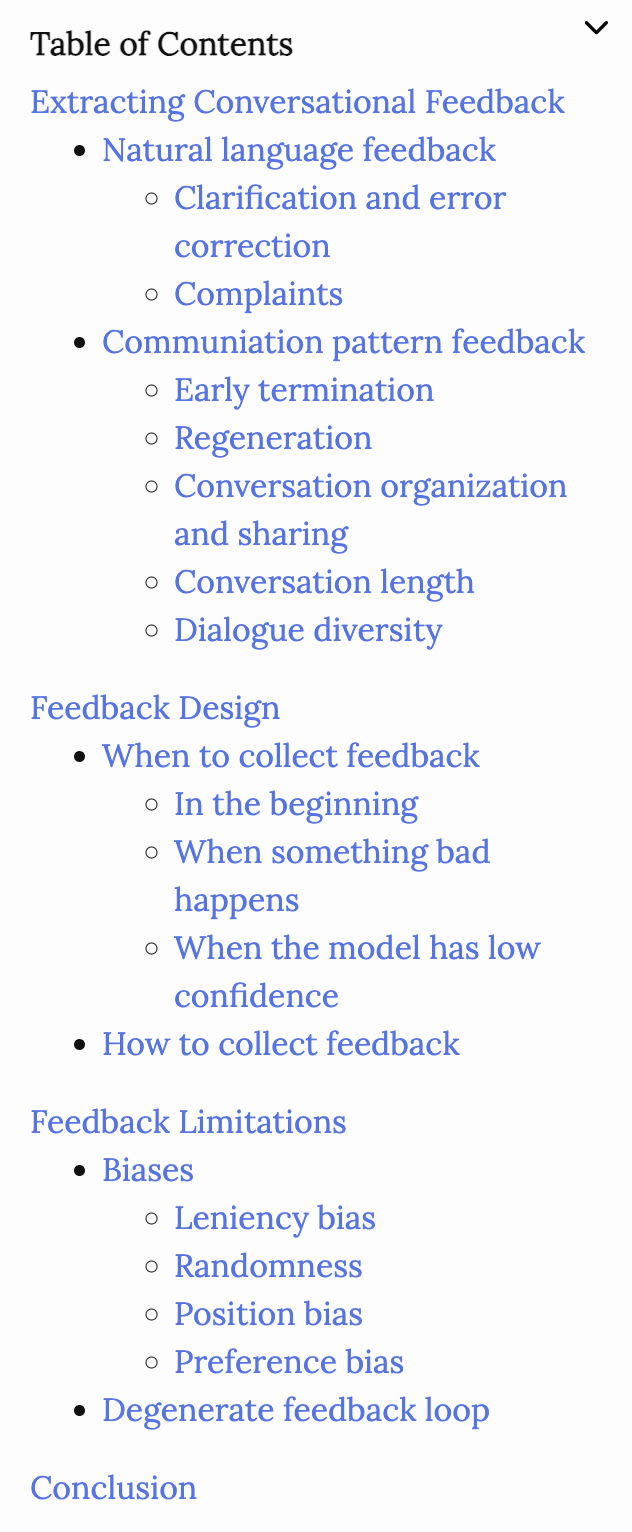 User feedback is essential for evaluating and developing AI applications, especially those with conversational interfaces like chatbots and assistants. Effective user feedback collection systems can personalize models, improve future iterations, and maintain a competitive edge. The post discusses various types of feedback,