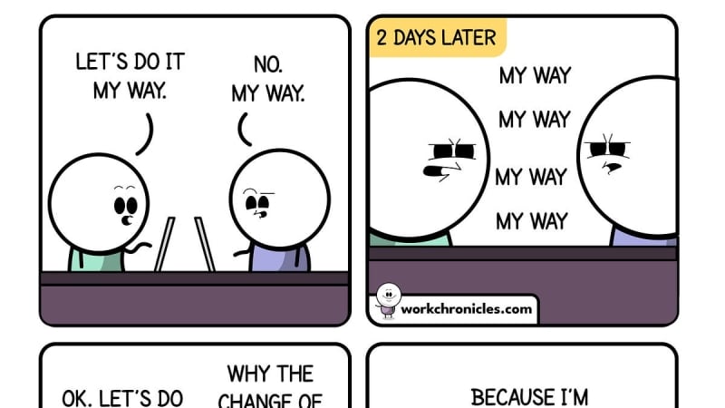 A workplace comic about winning arguments, with the punchline that persistence is the key. Part of the Work Chronicles series — comics about work life.