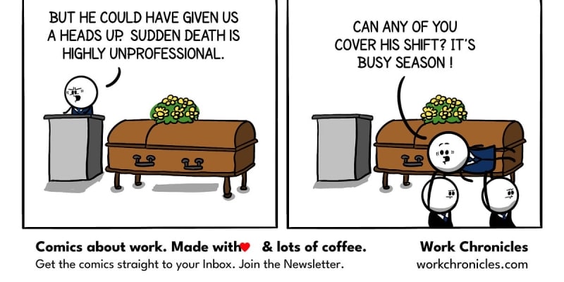 A comic strip illustrating workplace dynamics and what constitutes unprofessional behavior in office settings.